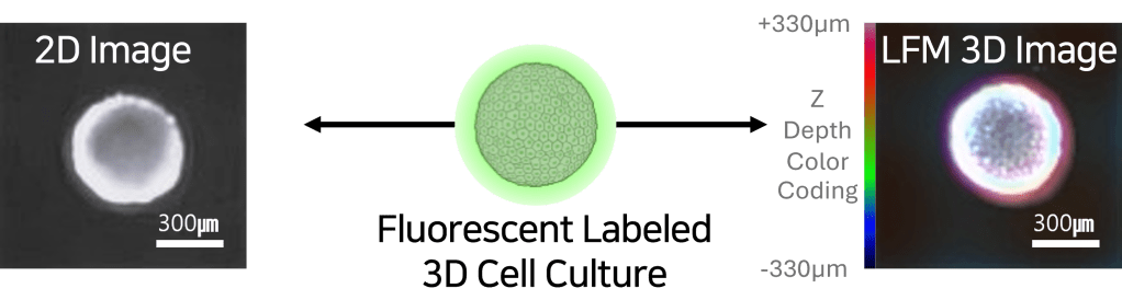 It can capture all the live functional signals of fluorescently labeled molecules of interest in organotypic 3D cell cultures in a single-shot.This enables real-time 4D spatio-temporal analysis, allowing for more comprehensive and precise quantitative analysis of drug responses in mini-organs.